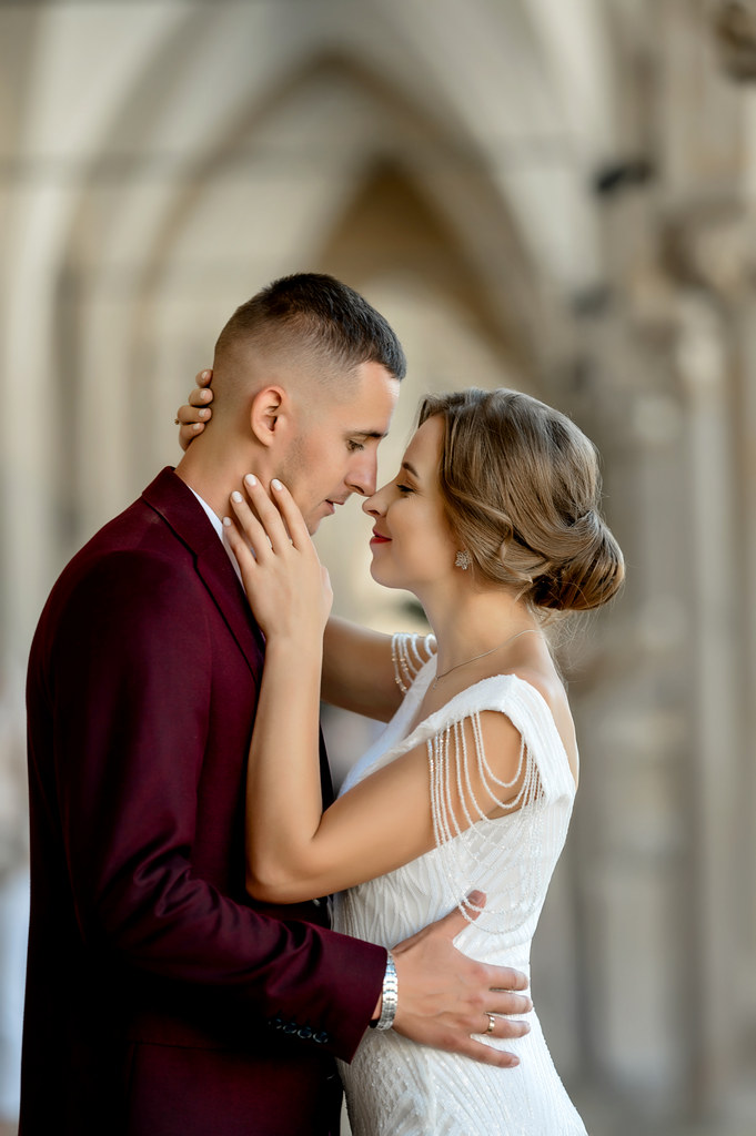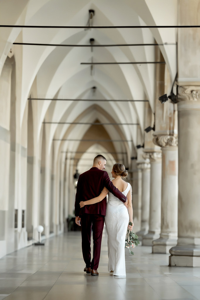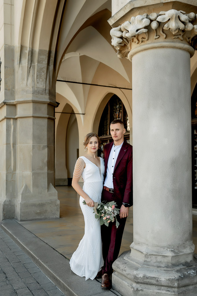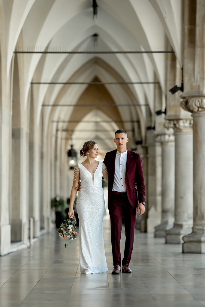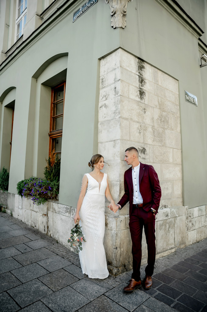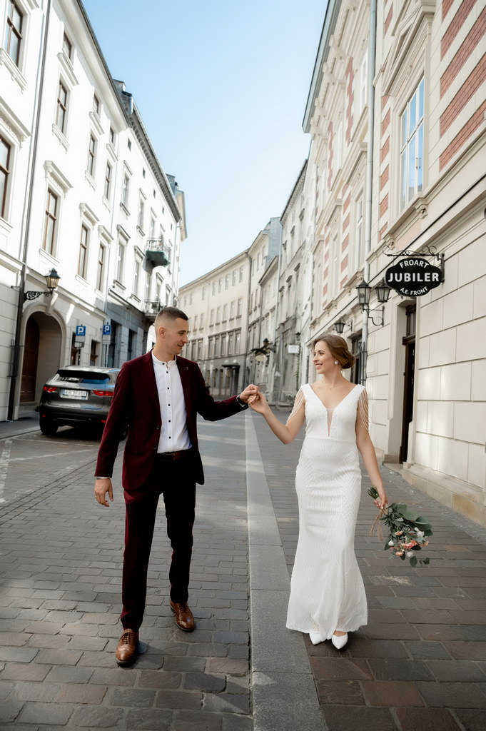 Sesja ślubna na Starym Mieście w Krakowie. Spacer po placu Runochnoye w Krakowie